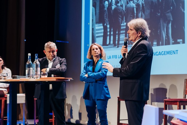 Pour fêter ses 115 ans, la FFB LANDES a choisi le thème de l’engagement. Au cours de la soirée, le Président Didier Massy a échangé avec Marie-Ange Gay-Ramos, Présidente FFB Nouvelle-Aquitaine, ainsi qu’avec le Grand Témoin Claude Bergeaud, en mettant à l’honneur les événements, les temps forts et les initiatives qui valorisent la filière, le savoir-faire, et les Chefs d’entreprise du Bâtiment.